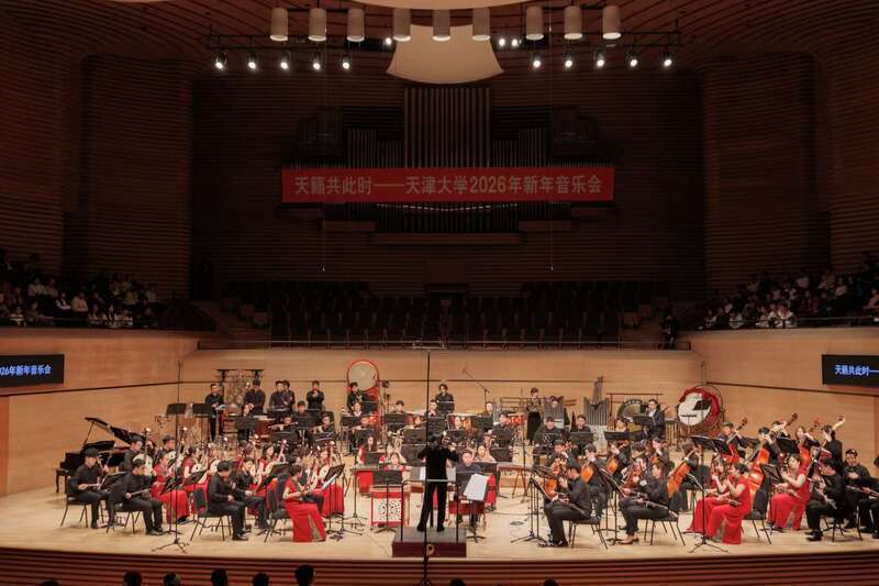 中国青年报客户端讯(中青报·中青网记者 胡春艳 通讯员 杨晰淳)哪位国家级指挥“空降”舞台?上千名观众如何用一只拨浪鼓化身“演员”,奏响壮阔的黄河乐章?12月22日晚,“天籁共此时——天津大学2026年新年音乐会”在天津大剧院奏响。天津大学北洋军乐团与北洋民族管弦乐团联袂献艺,以中西合璧、气势恢宏的音乐盛宴,为师生校友和社会各界观众送上了一份充满家国深情的新年贺礼。