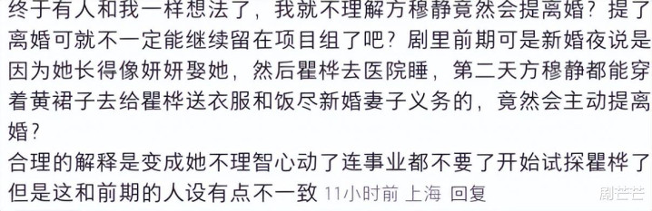 乍一看,还挺好看的。可后来,又是真假替身,又是闹离婚,方穆静主动选择跟瞿桦两头分居,瞿桦苦苦挽留,更加重了这种别扭感。