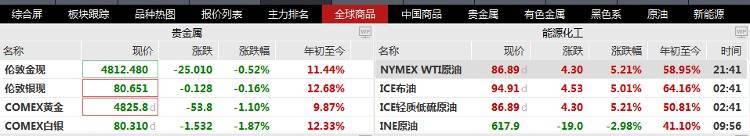 20日开盘,国际油价迅速飙升,WTI原油再度逼近90美元,盘中一度涨逾7%,现涨逾5%;黄金回落,现货黄金盘中跌超2%,现跌幅收窄至0.5%报4812.48美元。