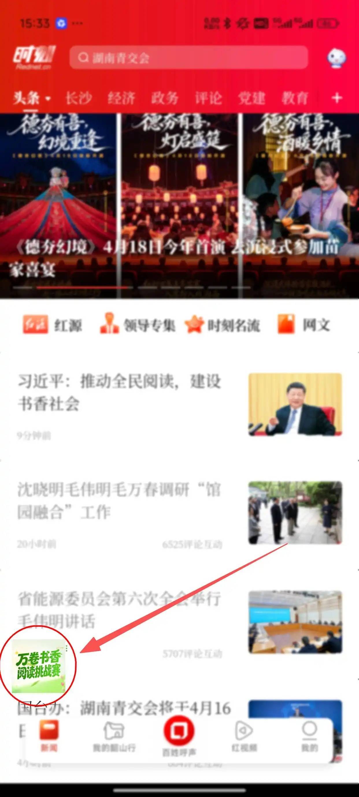 二、活动时间2026年4月16日—4月22日(共7天)三、打卡规则(一)阅读计时1.用户点击“立即报名”按钮后,选择活动页面内的任意书籍(包括电子书阅读和有声书收听),系统即开始自动计时;2.不同书籍或内容的阅读时长可累计计算。(二)每日打卡标准1.每日只要阅读满15分钟,即可获得1次抽奖机会,100%中奖,现金红包、实体好书等你抱回家;2.每日上限3次,奖品数量有限,先到先得;3.连续7天完成每日打卡的用户,除了每日奖励外,还可额外获得1次抽奖机会。(三)排行榜TOP10奖励活动结束时,进入排行榜TOP10的用户,可获得以下奖励:第1-3名:红网&新华书店大礼包、正版书籍、无门槛优惠券;第4-6名:红网&新华书店大礼包、无门槛优惠券;第7-10名:正版书籍。嗨,亲爱的读书人~别再等待明天,此刻就是最好的开始,让我们在时刻新闻客户端遇见更好的自己,共赴这场“万卷书香”的春日盛宴。福利加码,惊喜不断,好书共享。寻找热爱阅读的你,欢迎加入“红网丨书友专属福利交流群”,一起解锁更多阅读惊喜!